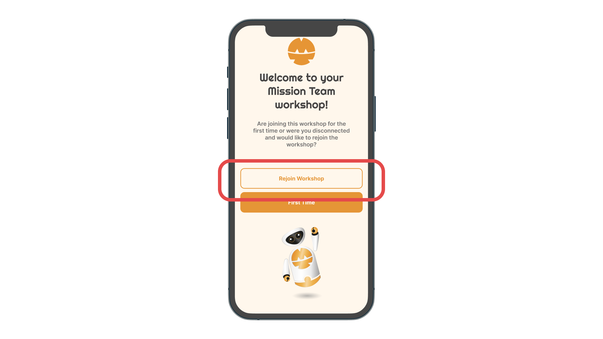 - Ask the team member to scan the QR code, then click Rejoin Workshop and follow the instructions. Alternatively, the team member can also click on the participant link in their invitation email or scan the QR code from there.