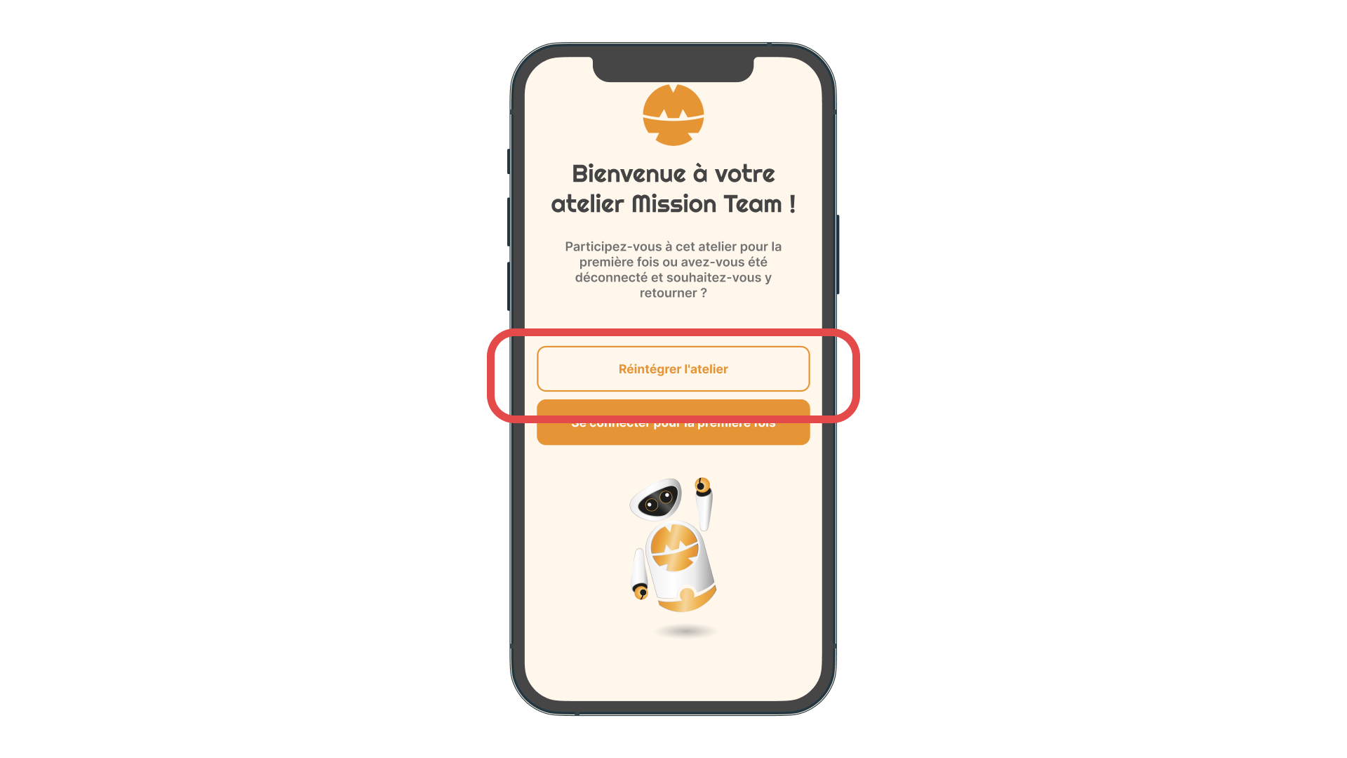 - Demandez au membre de l’équipe de scanner le QR code, puis de cliquer sur Réintégrer l’atelier et de suivre les instructions. Alternativement, il peut aussi cliquer sur le lien participant dans son e-mail d’invitation ou y scanner le QR code.